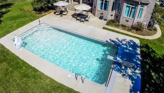We've jumped over another pool building hurdle - city permitting! They've given us the green light, so that means we are officially-official with our current plans and on the schedule for install sometime later this year. Things are getting real! Though I think with the rain we've had this spring everything is behind so we're not counting on swimming this summer. If we do, that'll be bonus! We shared our initial plans and 3D renderings in our last post here, but while we wait and are very much still in dreaming mode, we thought we'd share another big decision we've made - the color of the vinyl liner! Talk about a hard decision!!